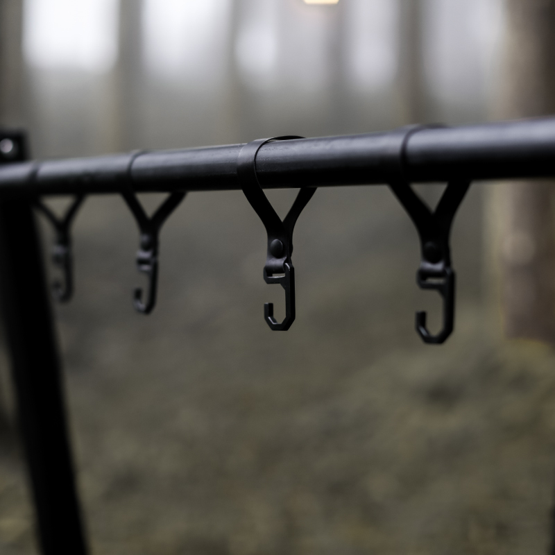 而在橫桿上更配置了延伸功能(燈架、延伸掛桿、層架等),可利用延伸配件搭配使用,建構出屬於自己的多元露營情境。